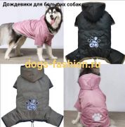 Дождевик на 4 лапы , с капюшоном , без подкладки. Застегивается впереди на липучках. Внизу кулиска для регулирования объема. Модель для больших собак. Унисекс