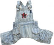 Джинсовый комбинезон с нашивной аппликацией на спинке в виде звездочки. Регулируется по объему собаки . Красивый, практичный, удобный наряд для прогулок вашего питомца