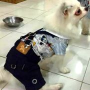 Джинсы на короткие лапы собак. Оригинально декорированы. Регулируются по объему за счет кнопок и по длине за счет подтяжек. Можно носить с футболкой