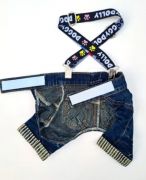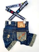 Джинсы на короткие лапы собак. Оригинально декорированы. Регулируются по объему за счет кнопок и по длине за счет подтяжек. Джинсы можно носить с футболкой или толстовкой