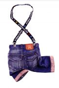 Джинсы на собачек с короткими лапками. Декорированы накладными кармашками, отворот контрастного цвета. Регулируются по объему за счет кнопок, по длине за счет подтяжек