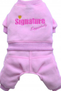 Флисовый костюм без капюшона . Застежка впереди на липучках На рукавах, штанишках, по талии трикотажные манжеты. На спинке вышивка -надпись "SIGNATURE"