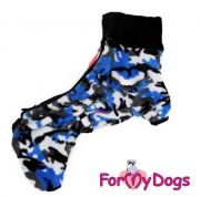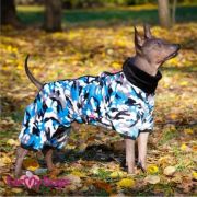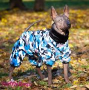 Комбинезон из однослойного плюшевого меха без капюшона с застежкой - молнией на спинке. На рукавах тонкие эластичные резинки. Высокая горловина защищает шею собаки от ветра и снега, На талии и груди утягивающие резинки для регулирования плотности прилегания. Отлично подойдет для любой породы на прогулках и в качестве домашней одежды