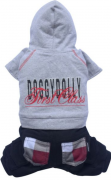 Костюм состоит из флисовой толстовки с капюшоном и флисовых брюк. Застегивается впереди на липучках. Удобен и практичен на прогулке и дома