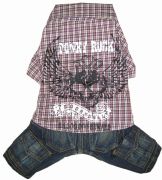 Летний костюм - рубашка с джинсами -очень удобный и практичный наряд для летних прогулок. Эта модель для френч бульдогов и мопсов
