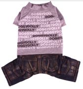 Костюмчик- футболка с джинсами.с надписями на спинке