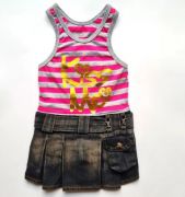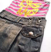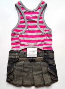 Летний платье -костюм состоит из майки в розовую полоску с принтом на спинке и джинсовой юбочки Удобный и практичный вариант для летних прогулок