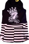 Платье состоит из черной майки и юбки в полоску. Без застежки. На спинке красивый принт. Удобно и легко на прогулке в летнюю погоду
