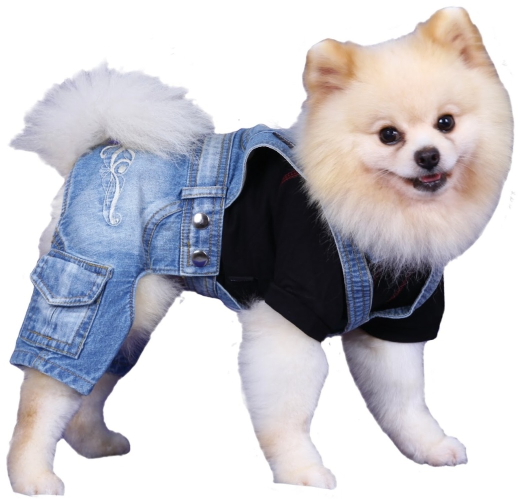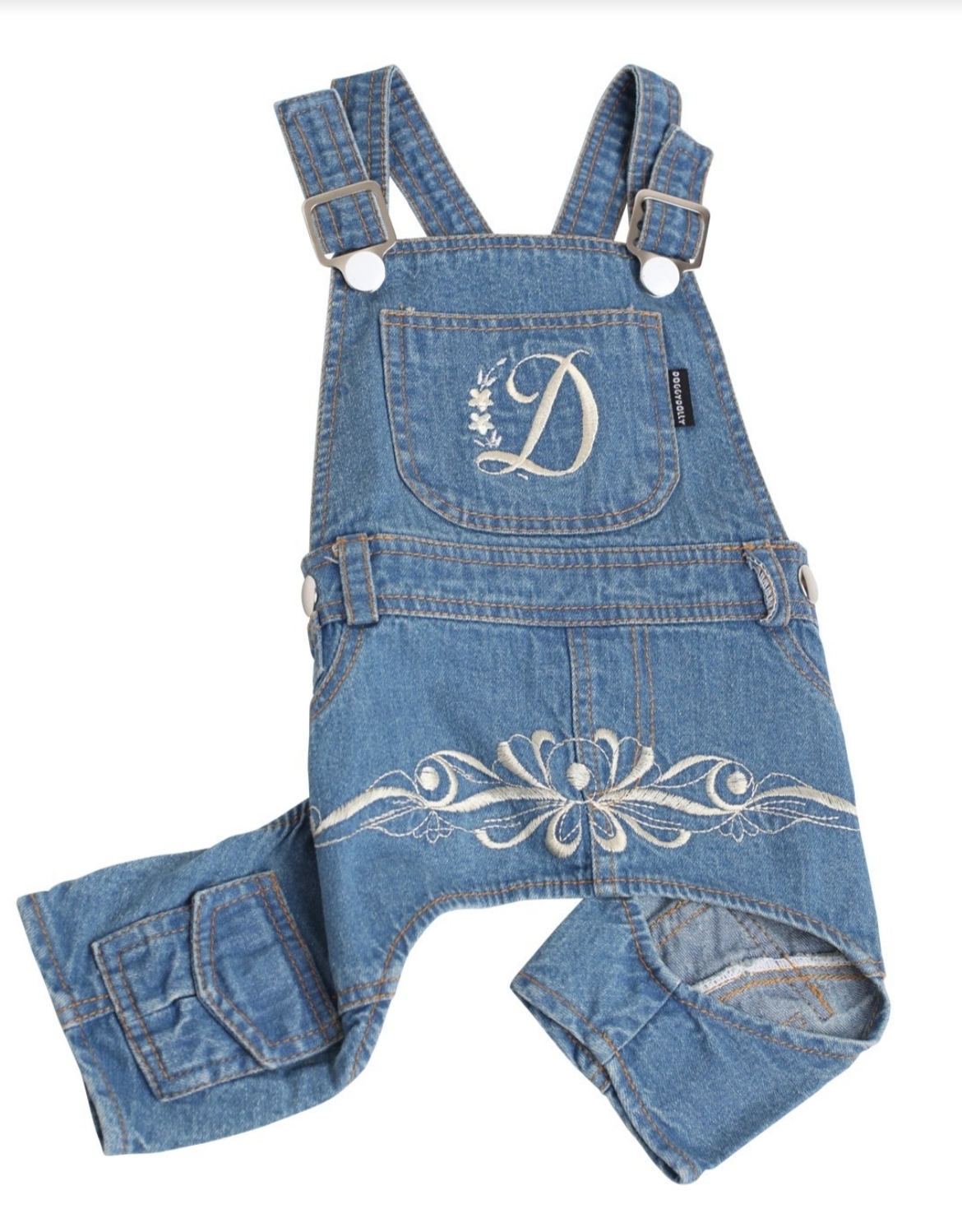 Джинсовый летний комбинезон с вышивкой на спинке и брюках. Стильная, удобная и практичная одежда для прогулок вашего питомца