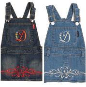 Джинсовый сарафан с вышивкой на спинке в виде буквы D, регулируется по объему собачки Стильный, практичный и удобный наряд для прогулок вашего питомца