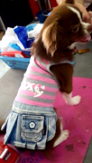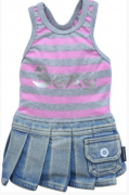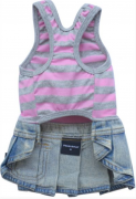 Летний платье-костюм состоит из майки в розовую полоску с надписью "Sexy" на спинкеи джинсовой юбочки. Вашей собачке будет удобно на прогулке.