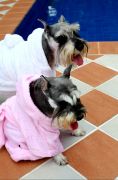 Махровый халат с капюшоном отлично подойдет для питомца прсле купания. Согреет и высушит.