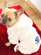 Махровый халат с капюшоном -необходимая вещь для вашей собаки. После купания согреет и высушит.