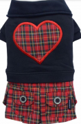 Платье- костюм состоит из толстовки с красивой аппликацией в виде клетчатого сердца и клетчатой юбочки с накладными кармашками. Очень удобный, красивый и практичный вариант для прогулок вашей собачки