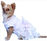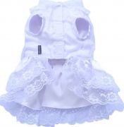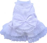 Шикарное белое платье украшено кружевом, органзой. В этом платье ваша любимица будет блистать на любом празднике, на свадьбе хозяина или близких друзей хозяина