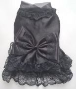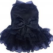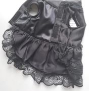 Черное украшено кружевом по линии шеи, . Многоярусная пышная юбка украшена кружевом и органзой . На талии атласный бант , украшенныйкружевом. Застежка впереди на липучках В этом шикарном платье ваша любимица будет выглядеть нарядно, привлекательно, стильно .