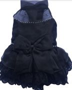 Черное кружевное платье. Воротник из органзы, На талии большой бант и мелкие жемчужинки в виде пояса. Пышная многоярусная юбка с кружевами и органзой. Застежка впереди на липучках Такое платье придаст шарм и стиль вашей любимице