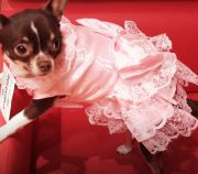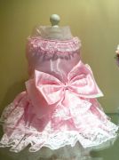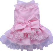 Элегантное розовое платье украшено кружевом, органзой. В этом платье ваша любимица будет блистать на празднике, на свадьбе хозяина или друзей хозяина