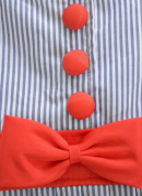 Платье тонкое, из хлопка. Украшено ярким красным атласным бантом на талии. На спинке красивые пуговицы. Юбка плиссе. Застежка впереди на липучках
