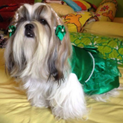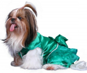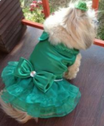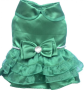 Нарядное платье с ярким атласным бантом на талии. Бант в центре украшен крупным стразом . Также по талии украшение жемчужинками в виде пояса.. Застежка впереди на липучках. В таком нарядном платье ваша собачка будет привлекать внимание окружающих.
