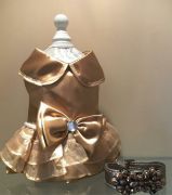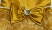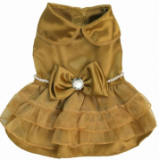 Платье с ярким атласным бантом наталии. Бант в центре украшен крупным стразом. Также по талии расположены жемчужинки в виде пояса. Многослойная юбочка сверху украшена органзой. Застежка впереди на липучках. В таком нарядном платье ваша собачка будет привлекать внимание окружающих