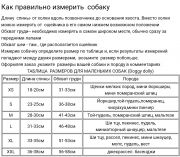 Таблица размеров на ФОТО
