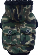 Куртка выполнена сверху из плотной водоотталкивающей ткани, утеплена внутри синтепоном. Капюшон пристегивается к спинке на липучке. Куртка застегивается впереди на липучках Вашему питомцу будет тепло и комфортно на прогулке в прохладную погоду