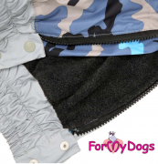Комбинезон без капюшона, выполнен из непромокаемой ткани, утеплен флисом, . Застежка-молния на спинке, защищена от промокания. На воротнике, рукавах и штанишках резинки для более плотного прилегания. Воротник дополнительно фиксируется на кнопку. . На талии утяжки для регулирования объема. Комбинезон для собак с широкой грудью( мопсы, французские бульдоги) Модель для мальчика , (с вырезом на животе )