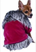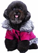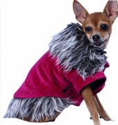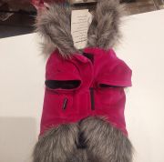 Выполнено из велюровой ткани цвета фуксия сверху Подкладка флисовая черная Воротник и опушка снизу из искусственного меха Воротник поднимается Застежка на липучках на животе Яркий и красивый наряд