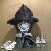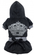 Велюровое платье- толстовка с капюшоном имеет кулиску на талии для регулирования объема. Трикотажные манжеты на рукавах На спинке принт в виде короны