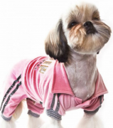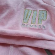 Велюровый костюм без капюшона , без застежки, с воротником Трикотажные манжеты на рукавах и штанишках . На спинке вышивка VIP Для активных прогулок.