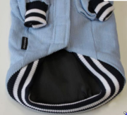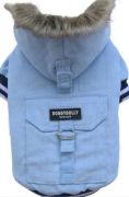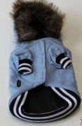 Теплая куртка с капюшоном согреет вашего питомца зимой и поздней осенью. Куртка выполнена из вельветовой ткани, внутри утеплена синтепоном. Капюшон оторочен мехом, пристегивается к спинке на липучку. Куртка застегивается впереди на липучках. На рукавах и внизу трикотажные манжеты для более плотного прилегания. На спинке декоративный карман